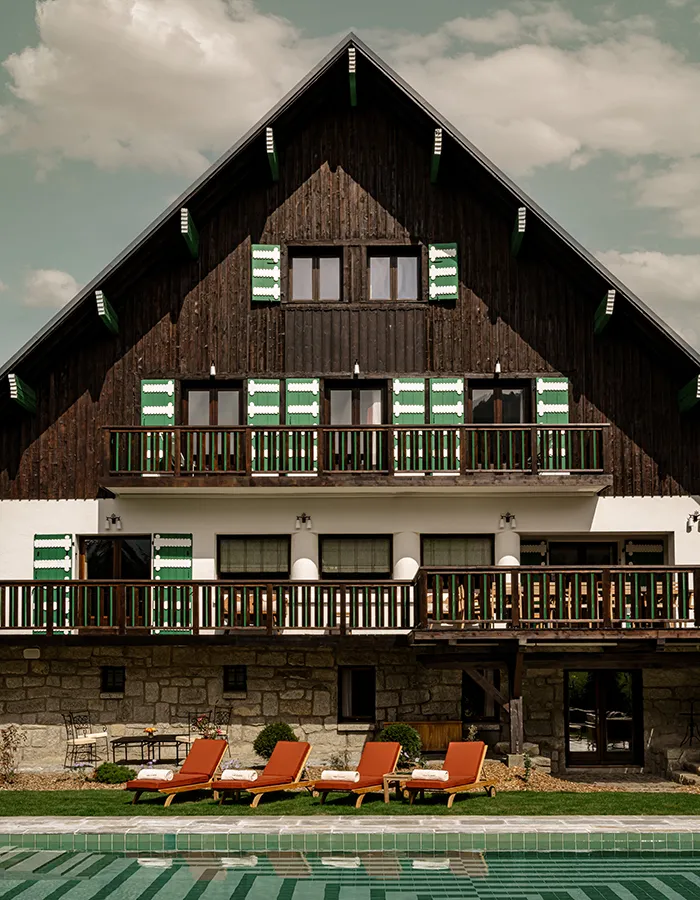 Дизайнеры играючи соединили историческое наследие с эстетикой ар-деко: геометрические паттерны, смелые цветовые решения и работы молодых ремесленников. Пространство получилось глубоким, многослойным и притягательным. Шале сдается только целиком и предлагает семь спален, детскую игровую, профессиональную кухню и спа-зону с крытым бассейном. Если вам было интересно, как история адаптируется к современному люксу, вам сюда.