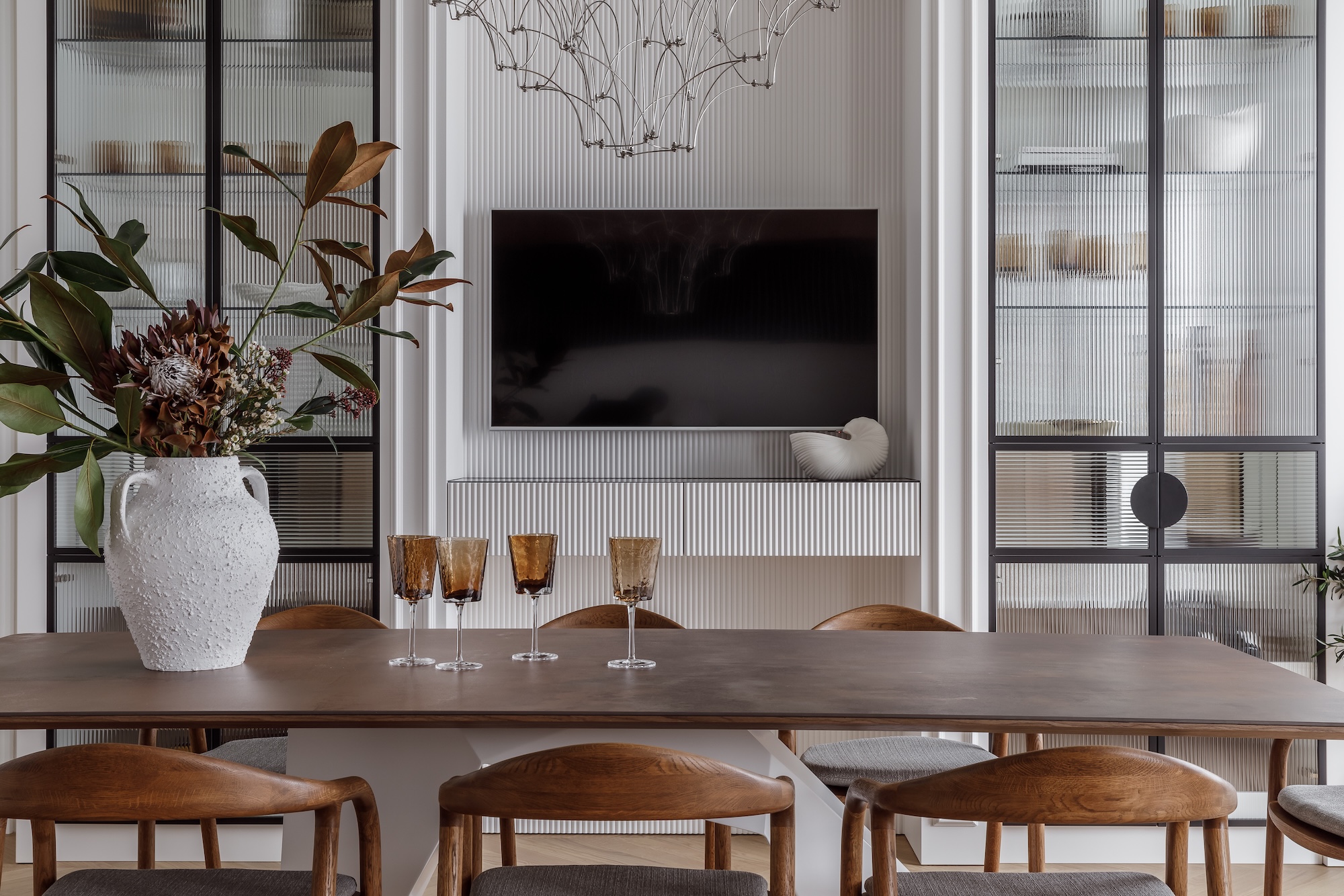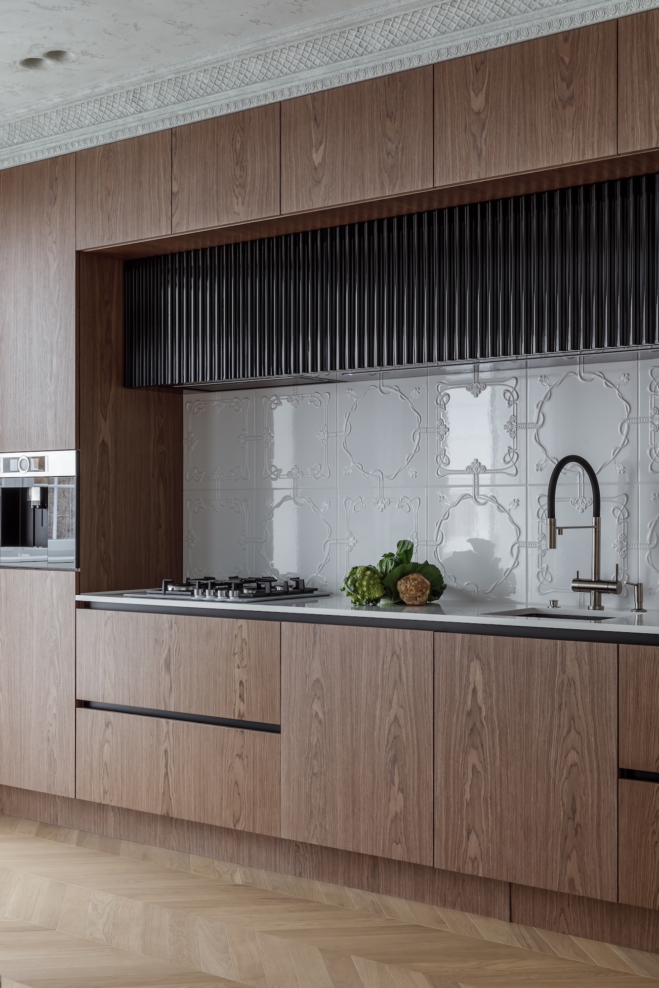 Дорогая кухня проектируется под ваши привычки. Глубина шкафов, высота столешницы, внутренние органайзеры для хранения ювелирных украшений или столового серебра — все это создается, чтобы вам было удобно, а не чтобы фабрике было проще пилить.