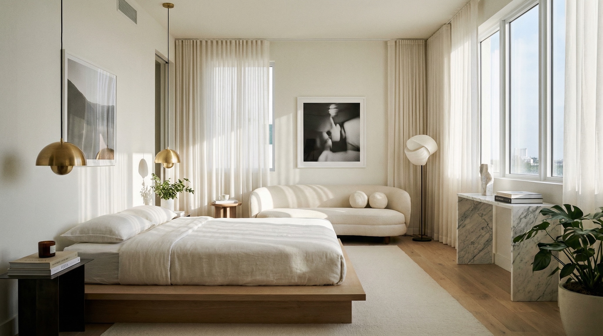 Перенос опыта таких икон, как Royalton (театральный, темный, нью-йоркский) или Delano (воздушный, белый, майамский), в квартиру требует отказа от бытовой логики в пользу сценографии. Вот четыре инструмента, которые создают этот эффект.