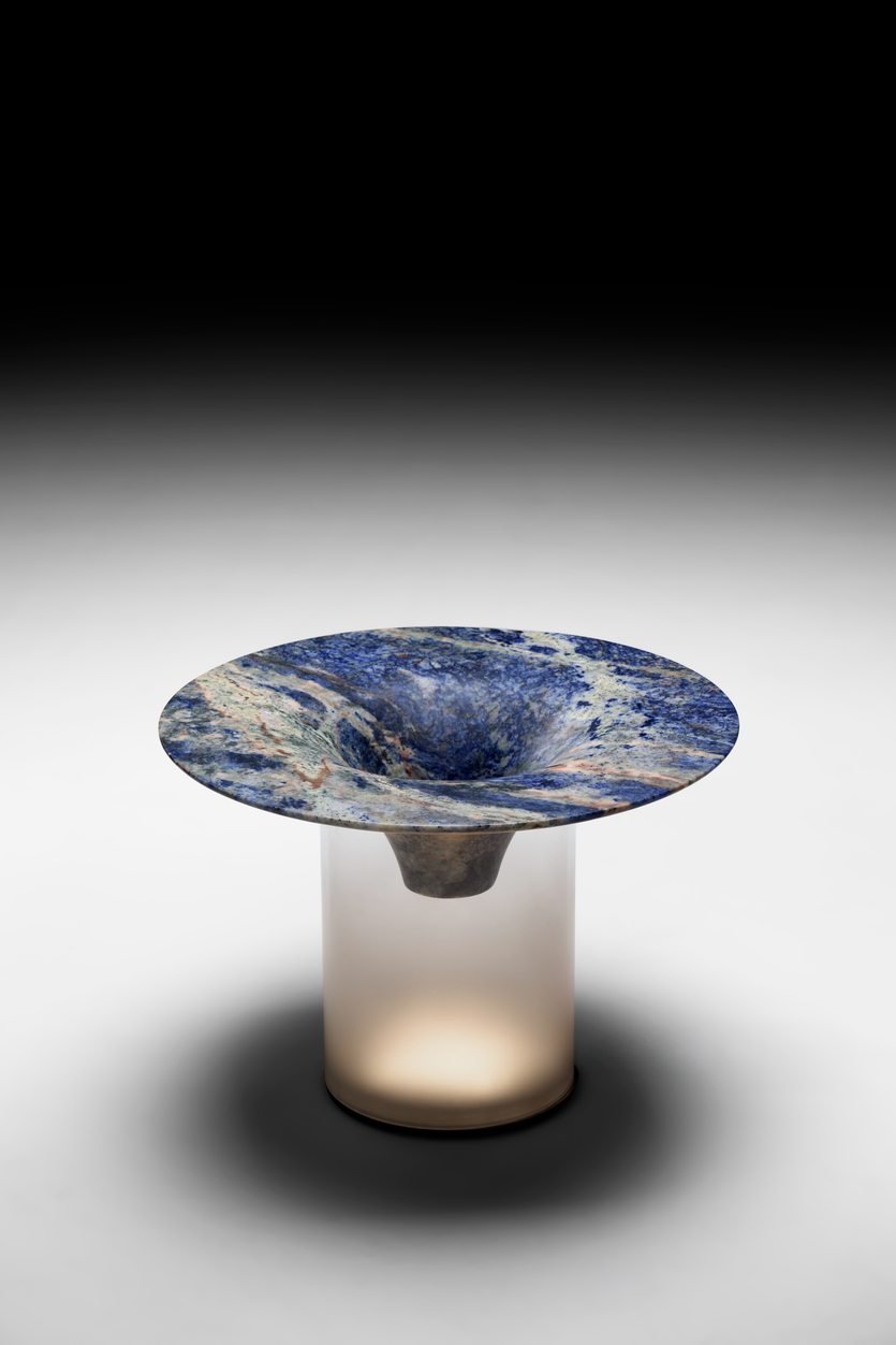 Главная фишка дизайна — редкий цветной мрамор, который используется для «воронки». В коллекции-2025 это такие сорта, как Verde Borgogna, Lepanto Rosso, Tobacco Brown и Sodalite Blue.