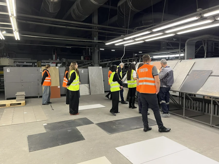 День начался с неформального общения и завтрака, чтобы задать тон открытому диалогу. А затем гости отправились в цех, где замерли в восхищении: они наблюдали за магией нанесения глазури, видели, как сырье превращается в прочный керамогранит, и могли лично оценить качество, буквально прикоснувшись к продукту на разных этапах его рождения.