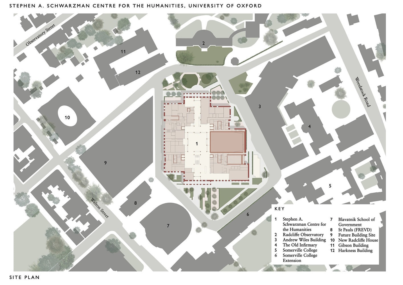 Краткое описание было подготовлено в ходе обширных консультаций с учёными, библиотекарями, студентами и персоналом. Семь гуманитарных факультетов, семь бодлеанских библиотек, Оксфордский интернет-институт и новый институт этики в области искусственного интеллекта, ранее рассредоточенные по 26 зданиям, теперь объединены в центре города, напротив обсерватории Рэдклиффа. Эта физическая академическая близость была специально разработана для поощрения междисциплинарности и сотрудничества.