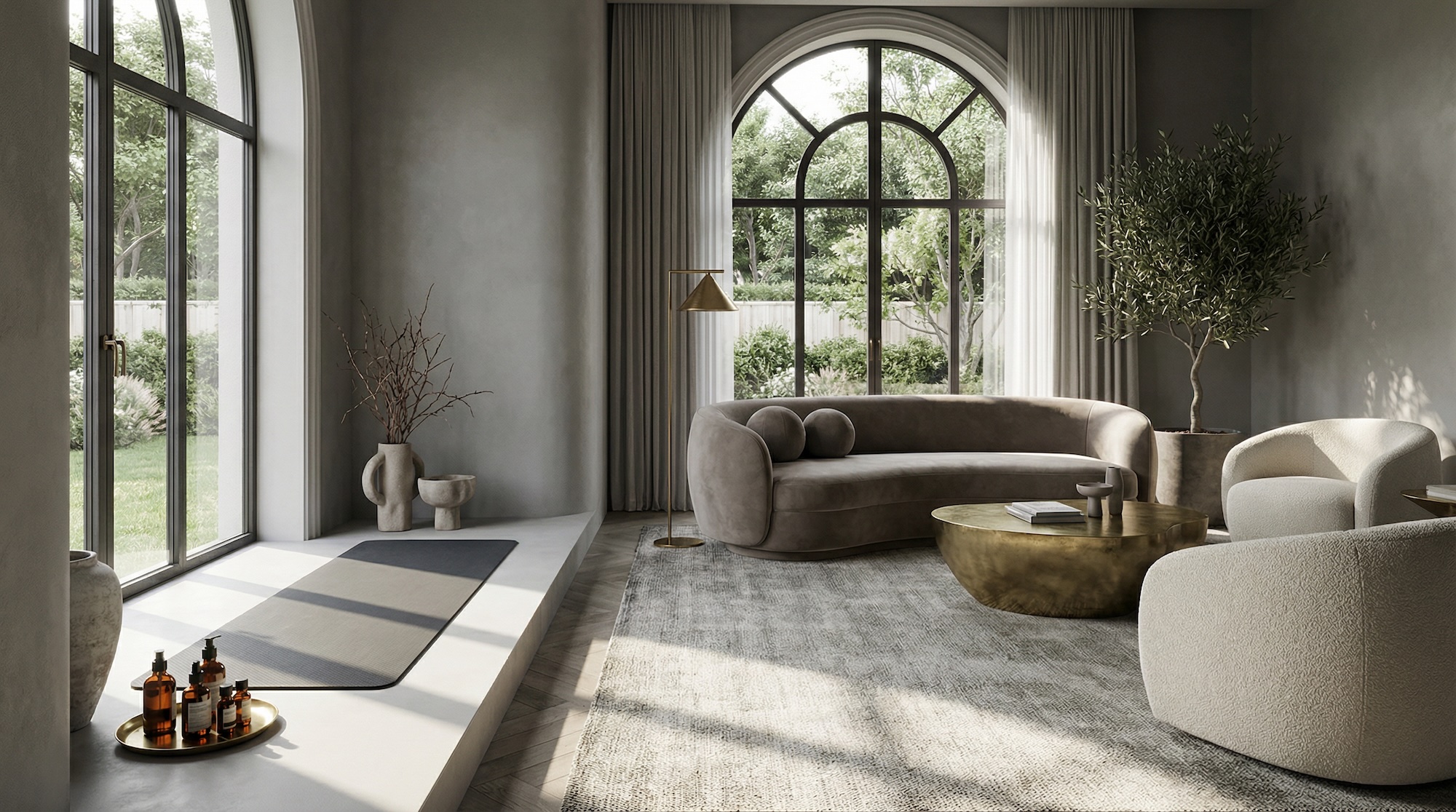 Появились новые функциональные единицы: угол для дыхательных практик и ниша для йоги. Главное требование к ним — моментальная доступность. Ритуал должен начинаться за секунду, без необходимости доставать инвентарь из кладовки. Разберемся, как это спроектировать.