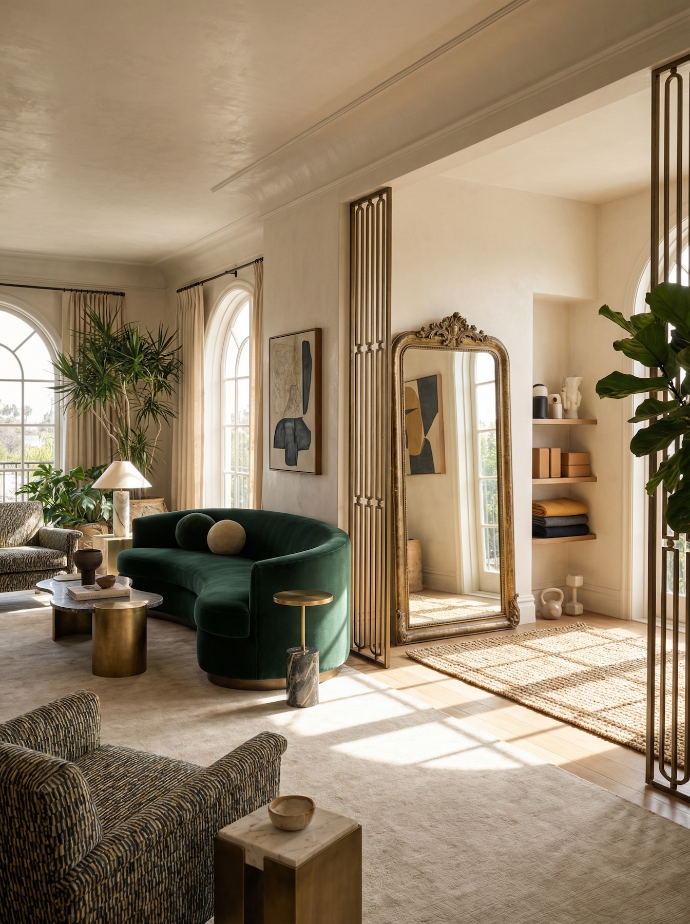 Если для полноценной студии места нет, проектируется йога-ниша. Это трансформируемое пространство, которое может быть частью гостиной или мастер-спальни.