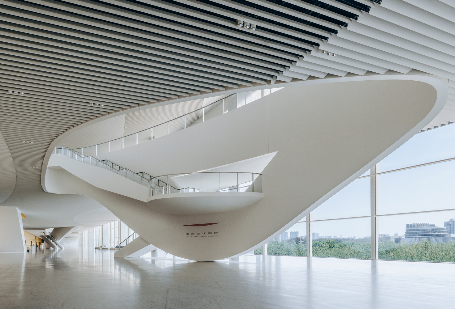 Китайский национальный конференц-центр в Пекине, спроектированный компанией 2Portzamparc, является крупным конференц-центром с выставочными залами и приёмными залами для проведения будущих международных конференций и саммитов глав государств. Огромное здание отличается своей широкой изогнутой формой и фасадом с множеством проёмов, которые поэтично напоминают о парящих птицах.