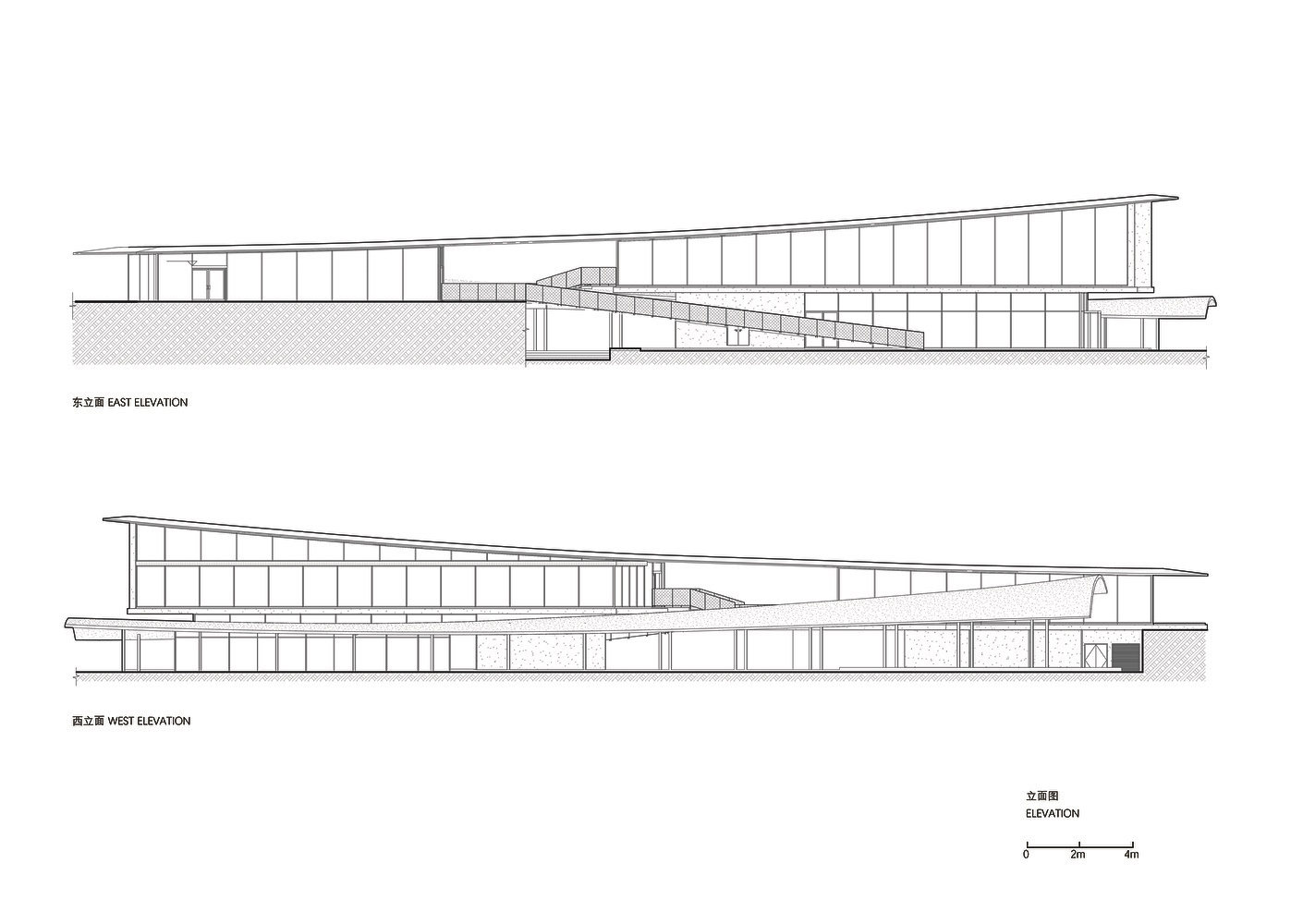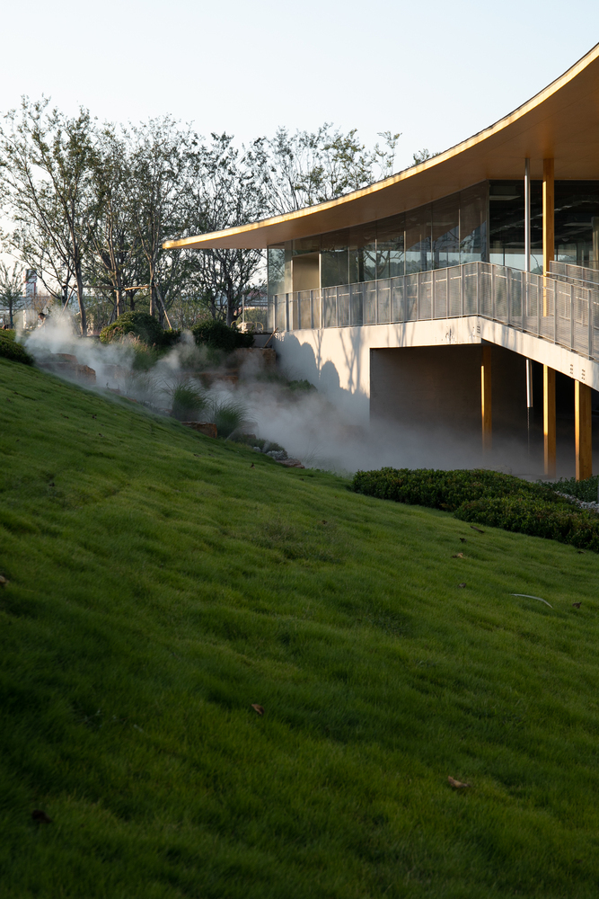 Архитектурная форма реагирует на ландшафт набережной линейными вариациями, придавая ему напряжённость и динамизм. Здание спроектировано таким образом, чтобы "перетекать", "растягиваться", "поворачиваться" и "открываться" в соответствии с естественной текстурой, взаимодействуя с рельефом ландшафта для усиления пространственной целостности и жизнеспособности. Нарушая традиционные границы между архитектурой и ландшафтом, дизайн позволяет зелёным насаждениям парка за пределами здания активно взаимодействовать с интерьером в любое время года, создавая непрерывные условия для активного отдыха.