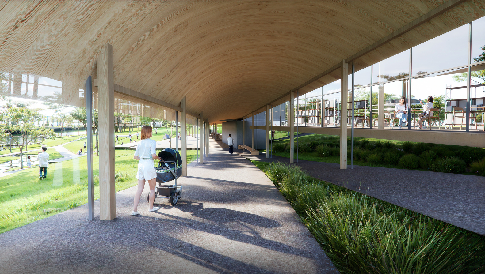 В проектах по озеленению городов, имеющих коммерческую составляющую, здания и парки часто чётко разграничены. Этот проект пересматривает взаимосвязь между общественной жизнью и коммерческим участием, руководствуясь принципом "сделать ландшафт видимым, создавая пространство между ними". Проект направлен на то, чтобы стереть границы между архитектурой и природными ландшафтами, исследуя, как архитектурная форма может способствовать установлению взаимовыгодных отношений между общественной жизнью и коммерческой деятельностью.