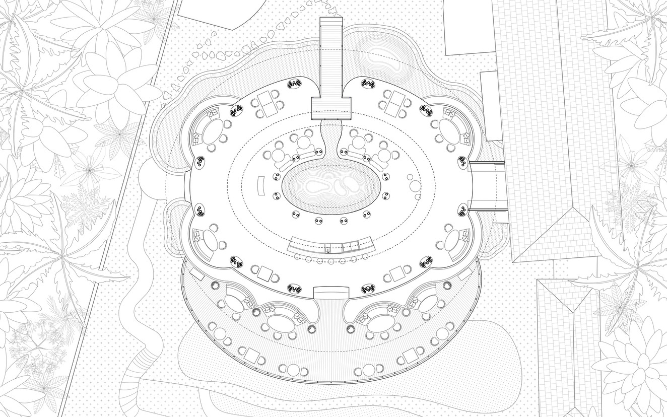 В основу проекта положены традиционные строительные практики, детали, стыки и устройство кровли в сочетании с современным подходом к архитектуре из бамбука. В контексте плотной застройки центральная круглая планировка создаёт чёткий человеческий масштаб и создаёт внутреннее отверстие для света и воздуха, центральный рельеф.