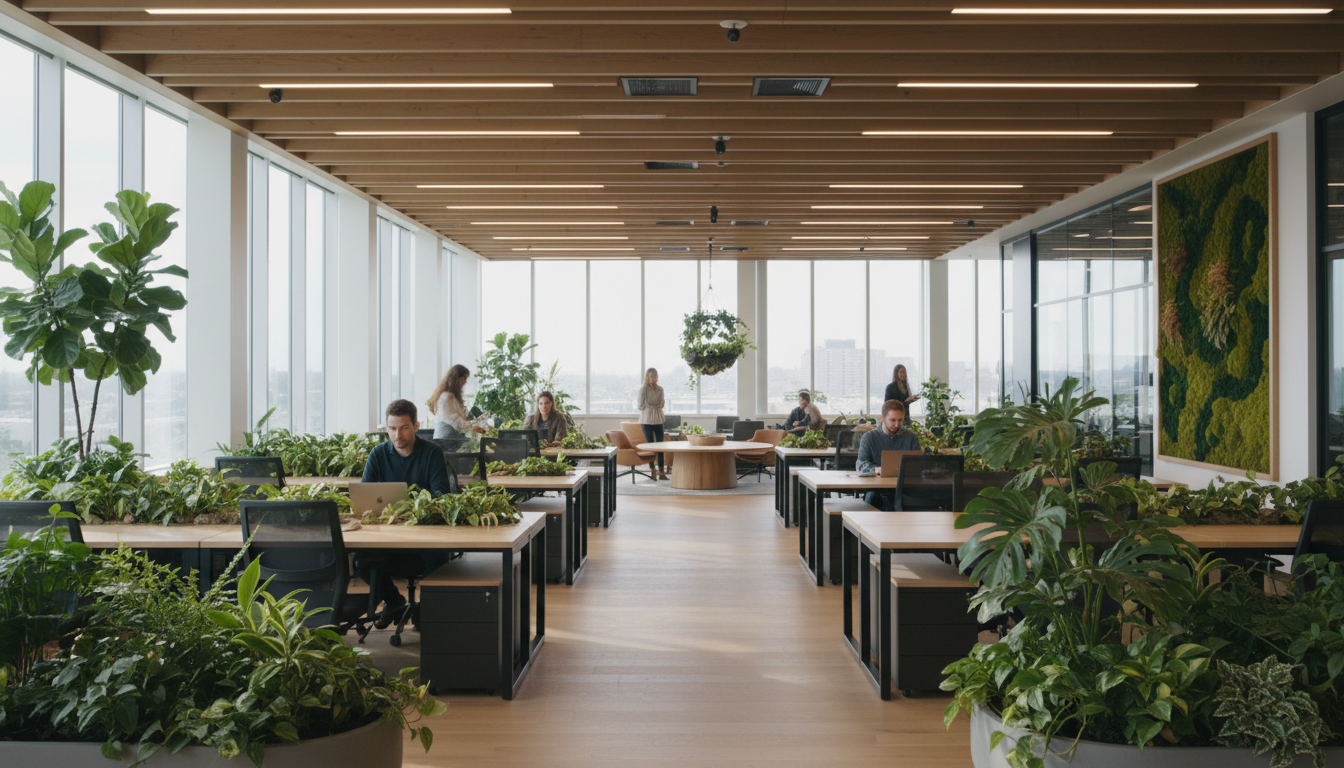 Вертикальное озеленение: зеленая стена или модульные живые панели в лобби/офисе. Вода и звук: небольшой водный элемент (фонтан) или использование натуральных звуков. Зонирование: биофильное зонирование рабочих мест (вид на зеленые зоны в офисе или природу за окном).Уровень 3. Амбассадор