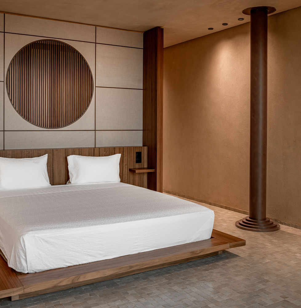 На краю поля для гольфа в Марракеше, на участке площадью 1400 м2, стоит вилла, задуманная как безмолвное присутствие, одновременно приземлённое и невесомое, чувственное и духовное. Проект основан на охряном городском пейзаже, извлекая из его материальности и света грубое, непритязательное благородство.