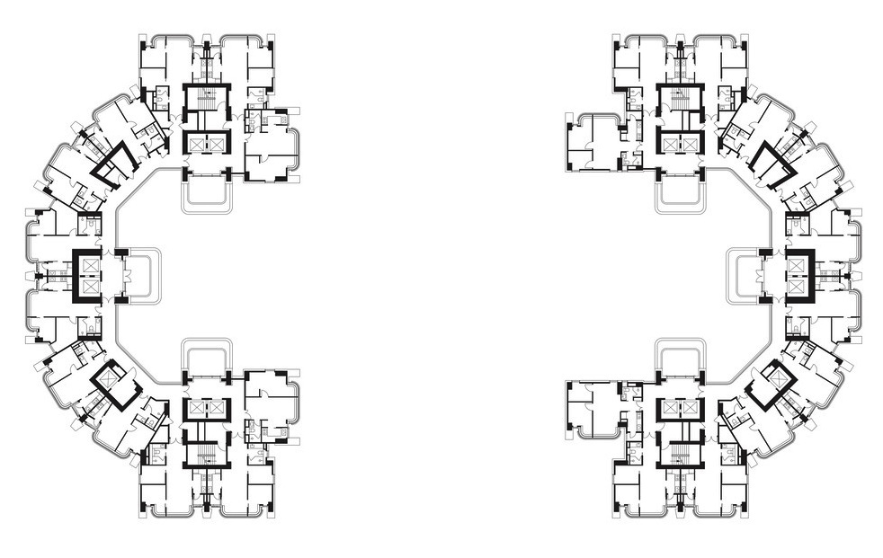 Люк Фокс, руководитель студии Foster + Partners, сказал: "Наш дизайн отвечает уникальным потребностям арендаторов, тщательно сочетая приватность и эксклюзивность с чувством общности в непринуждённой обстановке. На каждом этаже башен расположены общие террасы, с которых открываются захватывающие виды, а также обеспечивается естественная вентиляция и контролируемый дневной свет. Пышная зелень растекается по поверхности земли и по обеим башням, позволяя жильцам воссоединиться с природой и обрести душевное равновесие в конце рабочего дня."