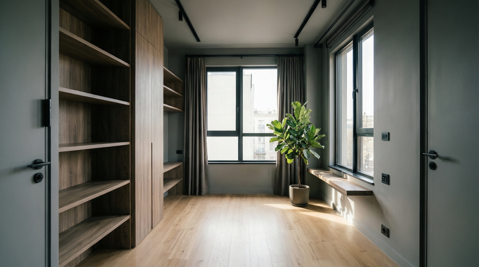 На северной стороне холодные оттенки будут выглядеть мрачно — лучше выбрать тёплые нейтральные. На южной — можно позволить себе глубокие зелёные или даже бордовые. -