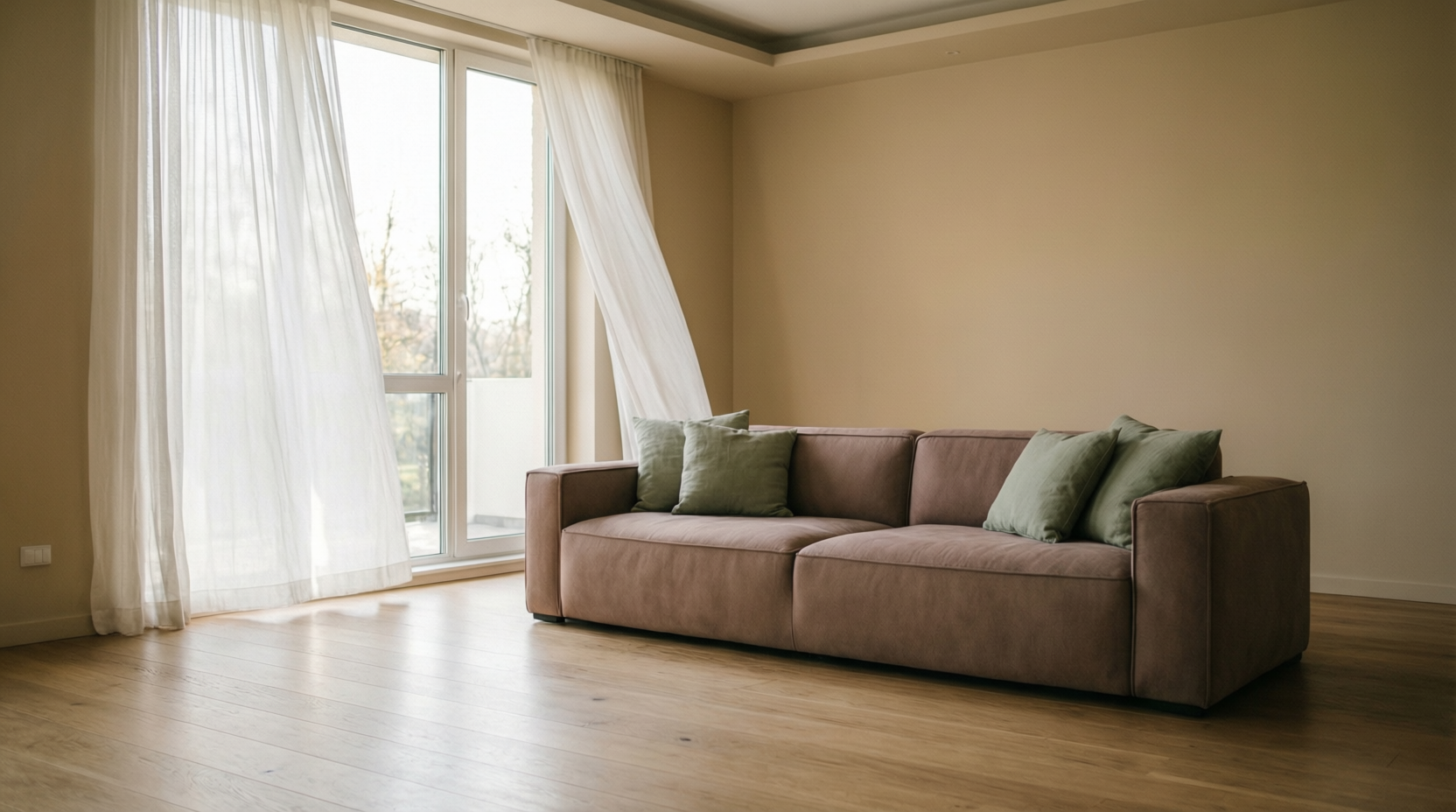 Холодные серые уступают место песочным, тауповым и кремовым оттенкам. Эти цвета создают мягкую, уютную основу, которая не «выбивается» при смене стиля интерьера. Особенно востребованы оттенки с лёгким оливковым или розовым подтоном — они добавляют глубину без резкости.