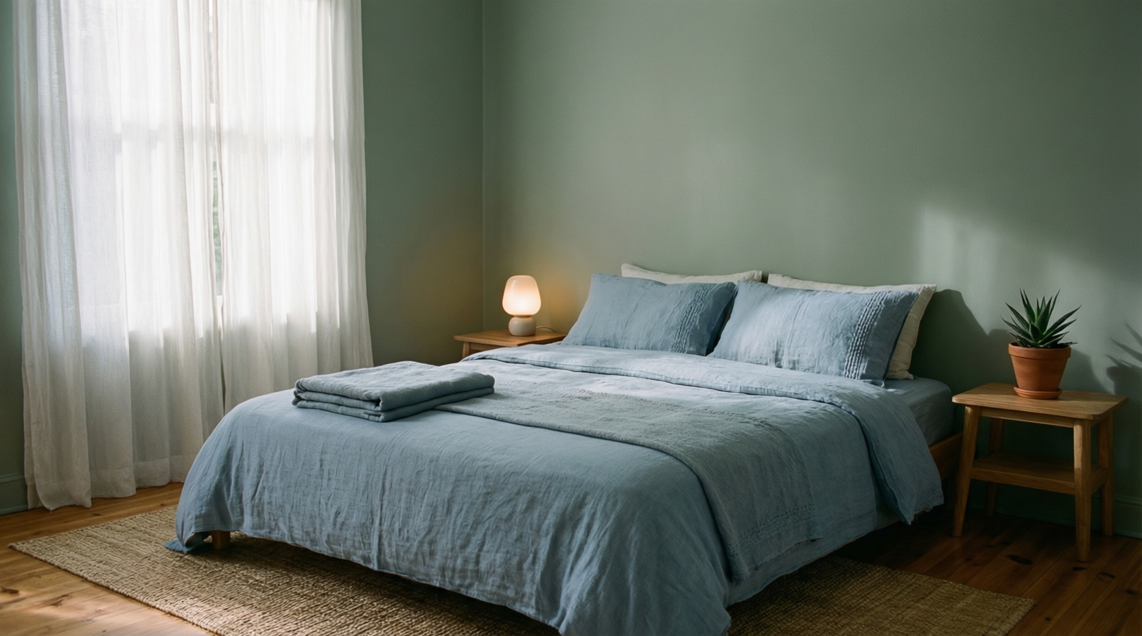 Оттенки шалфея, мха и оливы становятся главными героями гостиных и спален. Они ассоциируются с природой, свежестью и стабильностью. Специалисты рекомендуют использовать их не только на стенах, но и в текстиле, чтобы усилить эффект.