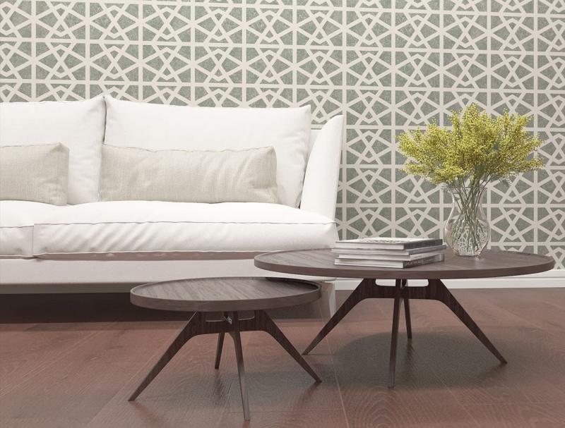 Обои с геометрическими узорами могут быть яркими и насыщенными, а могут быть весьма сдержанных оттенков.