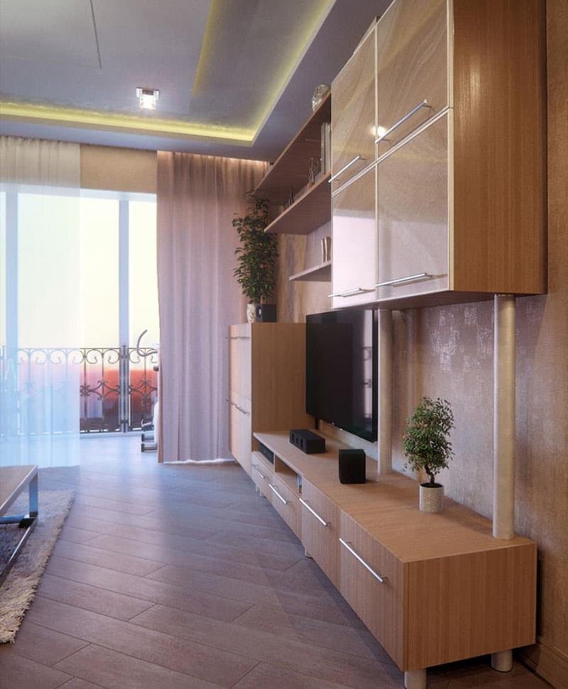 Оформите маленький зал в хрущевке при помощи модульных гостиных - так у вас будет возможность не только выбрать элементы, которые вам действительно необходимы, но и разместить и на свое усмотрение.