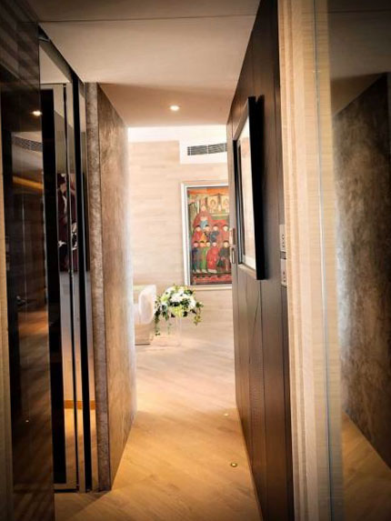 Большой коридор (прихожая) дает больше возможностей при планировании дизайна. Помимо самого необходимого можно позволить себе дополнительные элементы комфорта и декора помещения (диванчик у входа, большая напольная ваза).