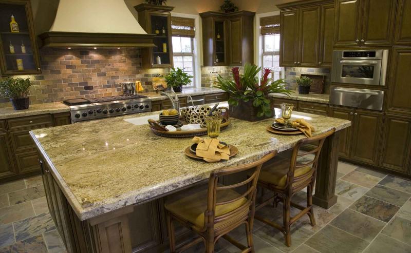 4. Столешницы темных цветов с мелким рисунком (например, из камня) намного практичнее, чем светлые и однотонные.