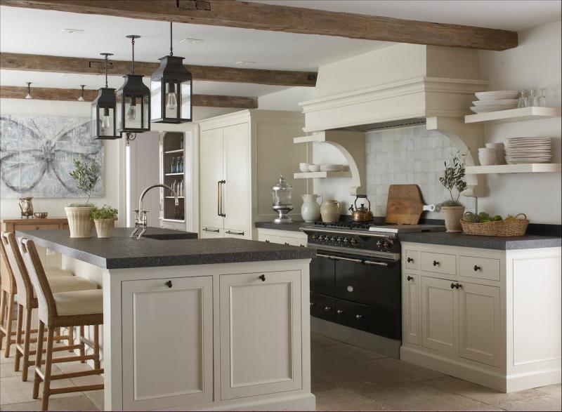 В интерьере квартиры модным трендом стали деревянные потолки, но на кухне ограничьтесь декоративными балками.