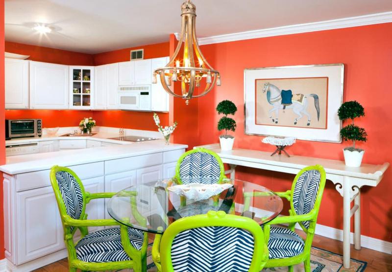 Используйте контрастные оттенки для оформления кухонного гарнитура и фартука из пластика. Комбинируйте складные стулья и скамейки для сидения. Дайте старым вещам новую жизнь, например переоборудуйте бабушкину швейную машинку в обеденный стол. Сведите к минимуму тяжелую массивную мебель.