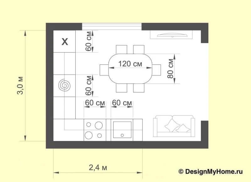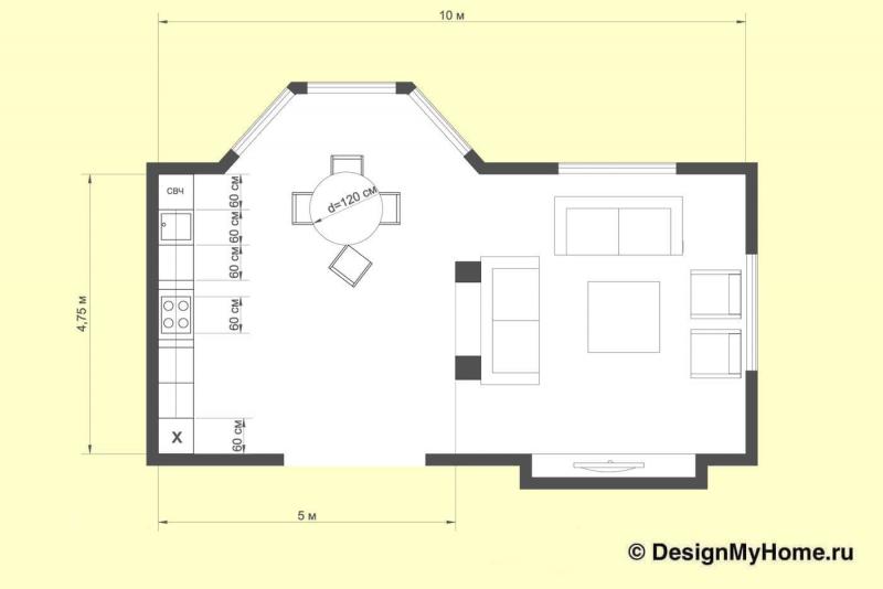 - Кухня-столовая должна быть достаточно просторной, чтобы свободно перемещаться по ней между двумя функциональными зонами.