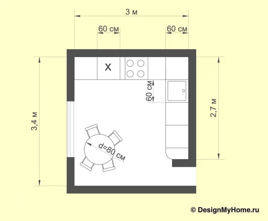 - Кухня должна быть хотя бы 8-9 квадратных метров, чтобы в ней поместилось все необходимое (раковина, плита, холодильник, духовка, кухонный стол, шкафы для хранения посуды и т.д.)