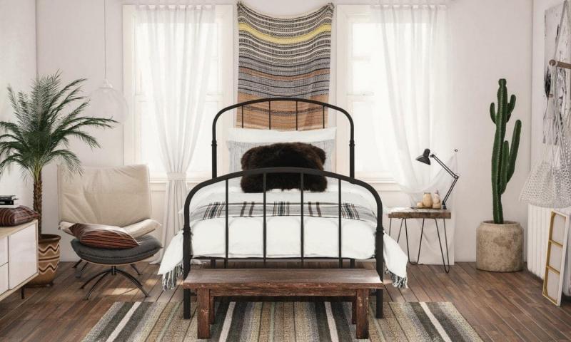 Изножье часто становится “камнем преткновения” (во всех смыслах) в маленькой спальне, поэтому было бы лучше обойтись без него.