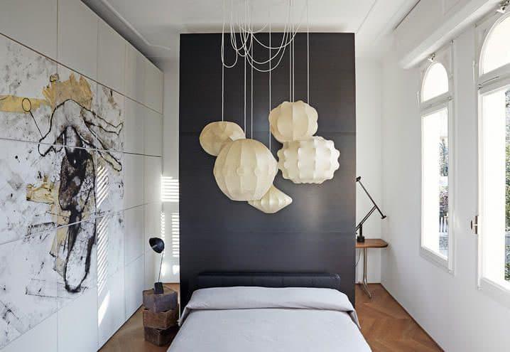 Но замените традиционные бра на низко опущенные потолочные светильники и ваша спальня однозначно станет оригинальнее и эксклюзивнее, чем у соседки.