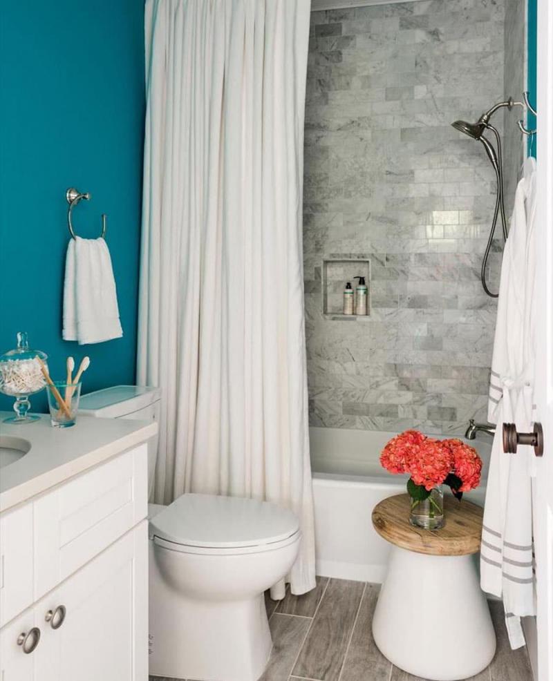 Но многие аксессуары вроде шторки для ванной, ковриков, всевозможных держателей и флакончиков лучше сразу отправить на покой и заменить более модными и стильными.