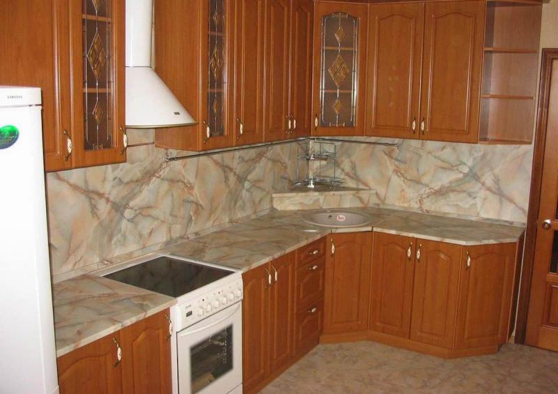 Фартуку из камня должен соответствовать подходящий кухонный гарнитур, так как какое-нибудь дешевенькое и вздутое ЛДСП на его фоне будет выглядеть особенно бедно и убого.