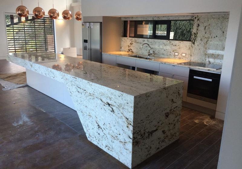 Модным трендом стало создание столешницы и кухонного фартука из одного вида камня.