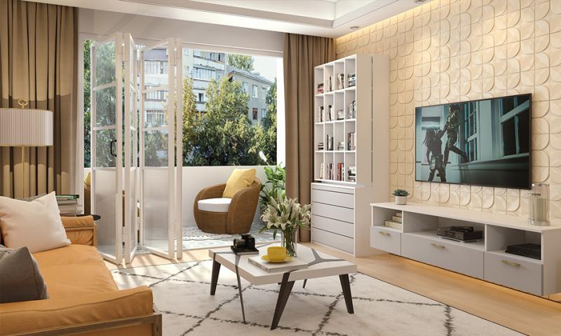 Распашные двери обычно занимают место при открытии, тогда как конструкция раздвижных дверей оптимизирует доступное пространство. Как видно здесь, компактная ванная комната может казаться немного просторнее с раздвижной стеклянной дверью. А в гостиной это отличный способ совместить балкон и расширить пространство. Это хорошо работает, когда собирается больше людей и, следовательно, требуется больше места.