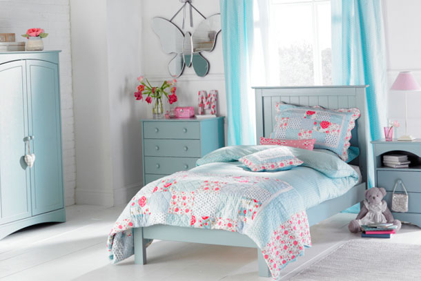 Свежий и яркий вариант девичьей спальни. Эти цвета объединены не случайно, поскольку они очень лаконично сочетаются как в естественном виде, так и в различных своих оттенках.