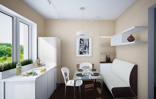 Для маленькой кухни угловой кухонный диван лучше не использовать, поскольку он займет огромное количество места.