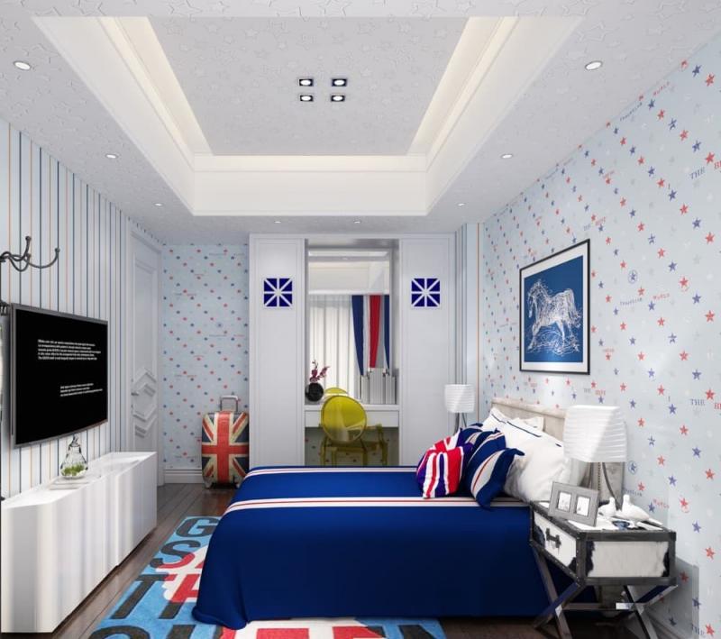 Популярный холодный цвет. Вместе с тем он является успокаивающим и снижающим активность. Отлично будет смотреться в большой спальне (поможет сделать ее уютнее), но противопоказан маленьким спальням (так как оптически уменьшает пространство).