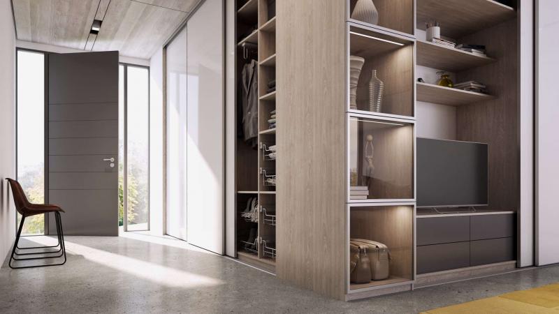 - Встраиваемые конструкции — оптимальный вариант при наличии свободных, неиспользуемых ниш и нестандартной планировке помещения.