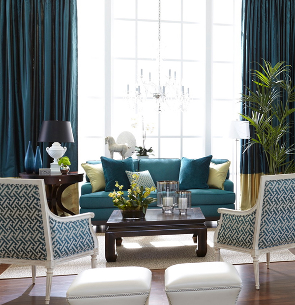 Цветные шторы легко сделают ваш зал более интересным, поэтому не бойтесь экспериментировать с сочетаниями. Вечное правило «шторы в тон текстилю» больше не является главенствующим. Подбирайте шторы в тон другим элементам декора или элементам отделки, если вы не используете однотонную гамму.