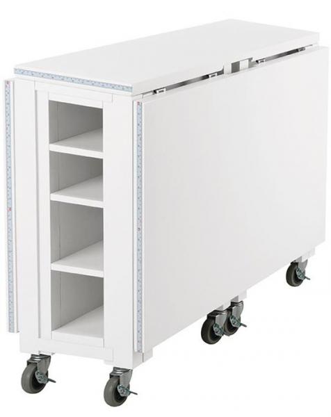 Это самый что ни на есть примитивный стол, не имеющий ничего лишнего: общая поверхность и одна-две плоскости по бокам, подымая-опуская которые вы можете варьировать размер столешницы по своему усмотрению.