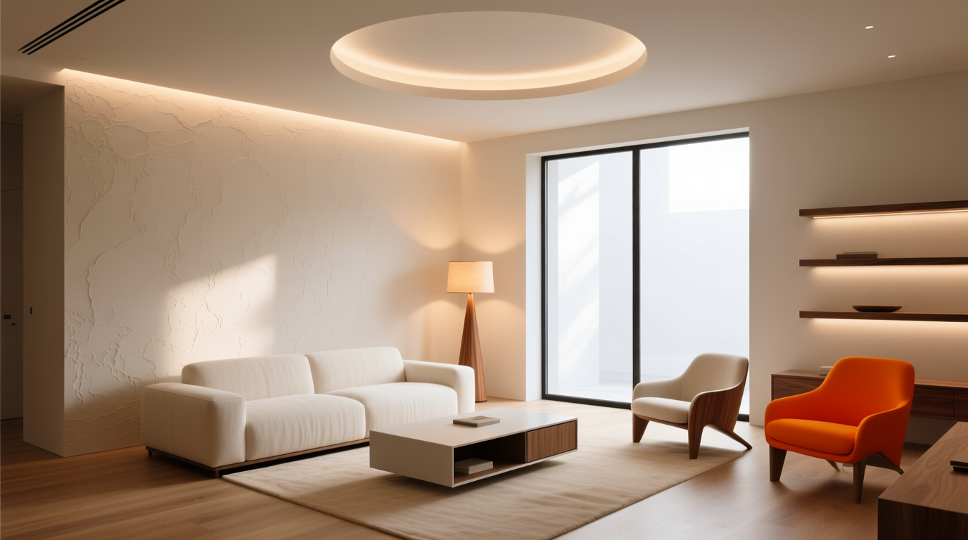 Тёплый свет создаёт ощущение уюта и расслабления, поэтому чаще используется в гостиных и спальнях. Нейтральный подходит для универсальных пространств — кухонь, столовых, коридоров. Холодный свет помогает сосредоточиться, но требует аккуратного применения, чтобы интерьер не выглядел «офисным».