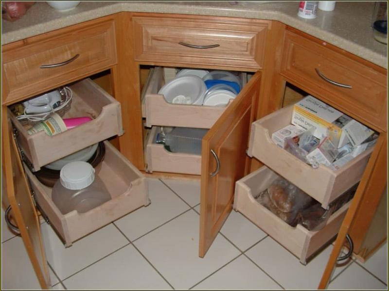Шкаф-пенал, угловой напольный шкаф или угловой буфет - самое “вместительное” решение для углового кухонного гарнитура. Оно позволяет максимально задействовать угол кухни.