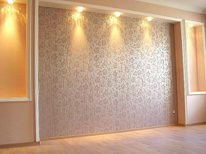 Рассмотрим плюсы. Склоняясь к этому виду отделки, подумайте, насколько ровные у Вас стены, требуют ли они предварительной обработки и не будут ли заметны различия и неровности в составе поверхности. Ведь жидкие обои способны сгладить лишь мелкие огрехи, но никак не выровнять стены, как это могла бы сделать штукатурка или гипсокартон.