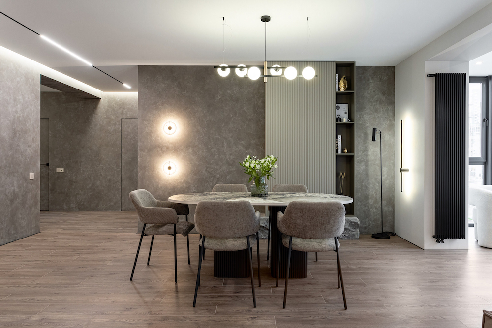 В этой квартире по запросу заказчиков дизайнеры соединили два стиля — брутализм и контемпорари.