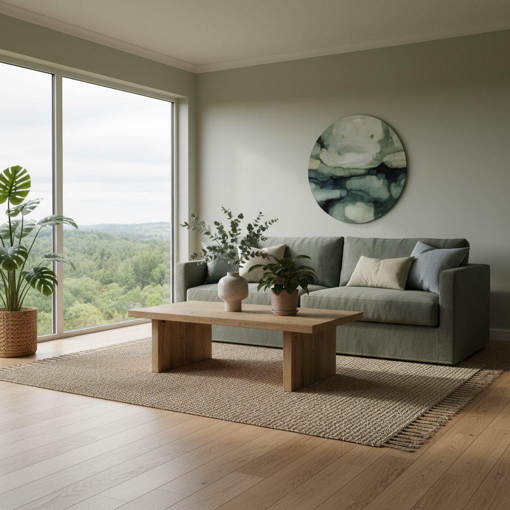Большинство брендов сделали ставку на обволакивающие и природные тона. Behr представил Hidden Gem («Скрытый самоцвет») — дымчатый приглушенный нефрит, а Valspar выбрал Warm Eucalyptus («Теплый эвкалипт»). Оба оттенка говорят о тишине и восстановлении. В этот же лагерь можно отнести и Universal Khaki от Sherwin-Williams — идеальный базовый цвет, теплый и заземляющий, а также Special Walnut от Minwax, подчеркивающий тренд на натуральность и тепло дерева.