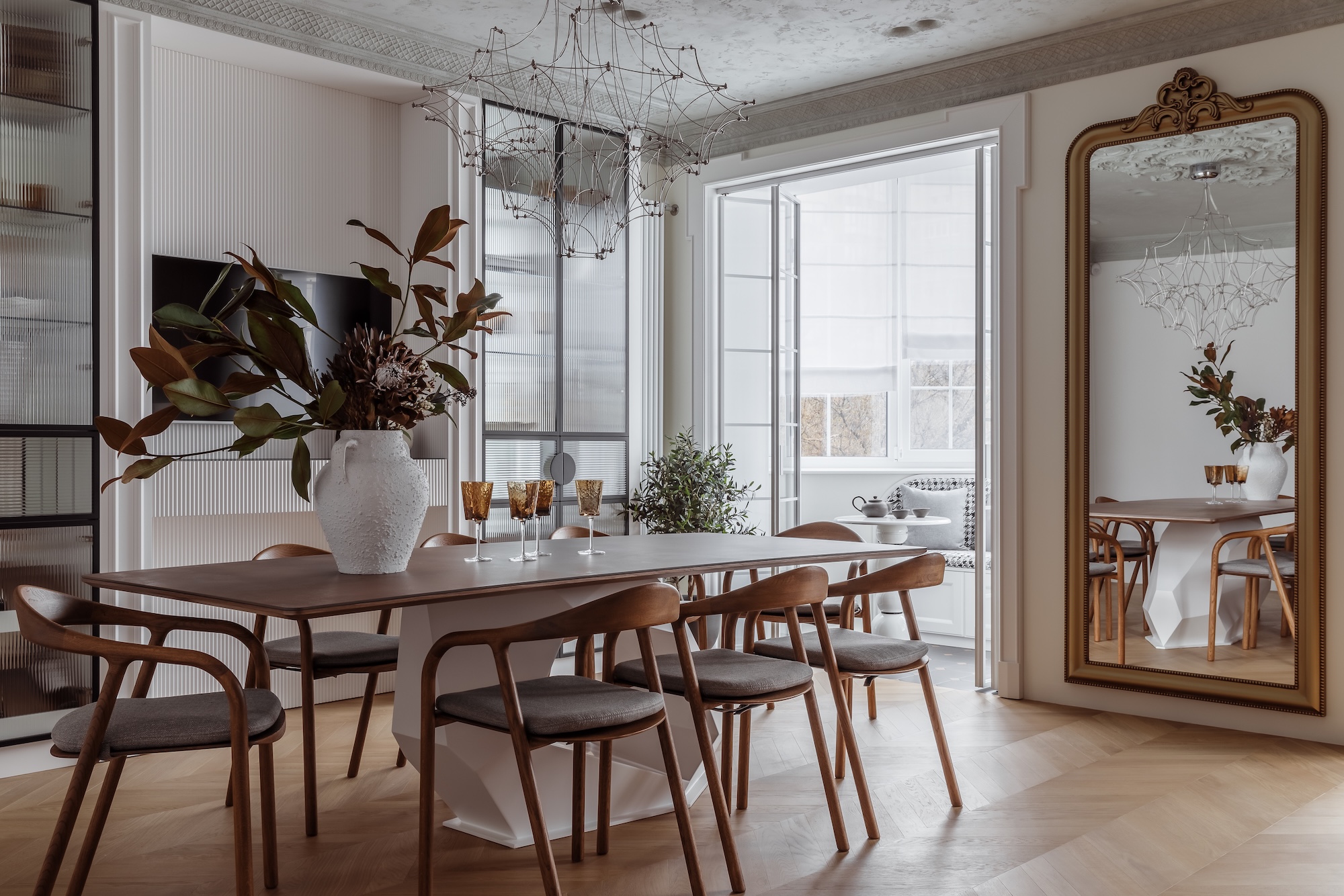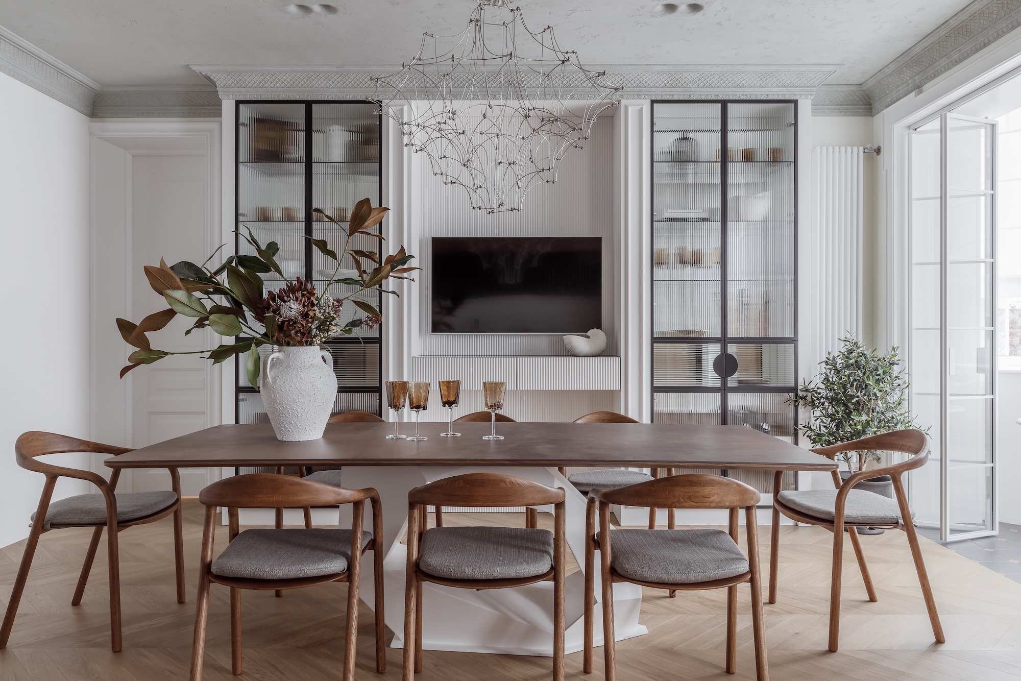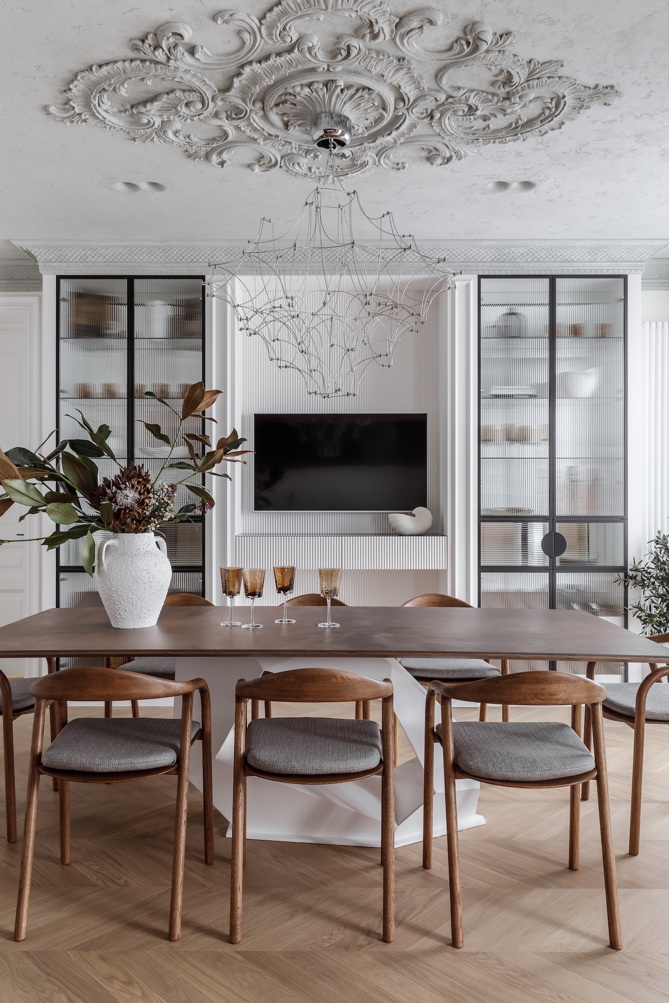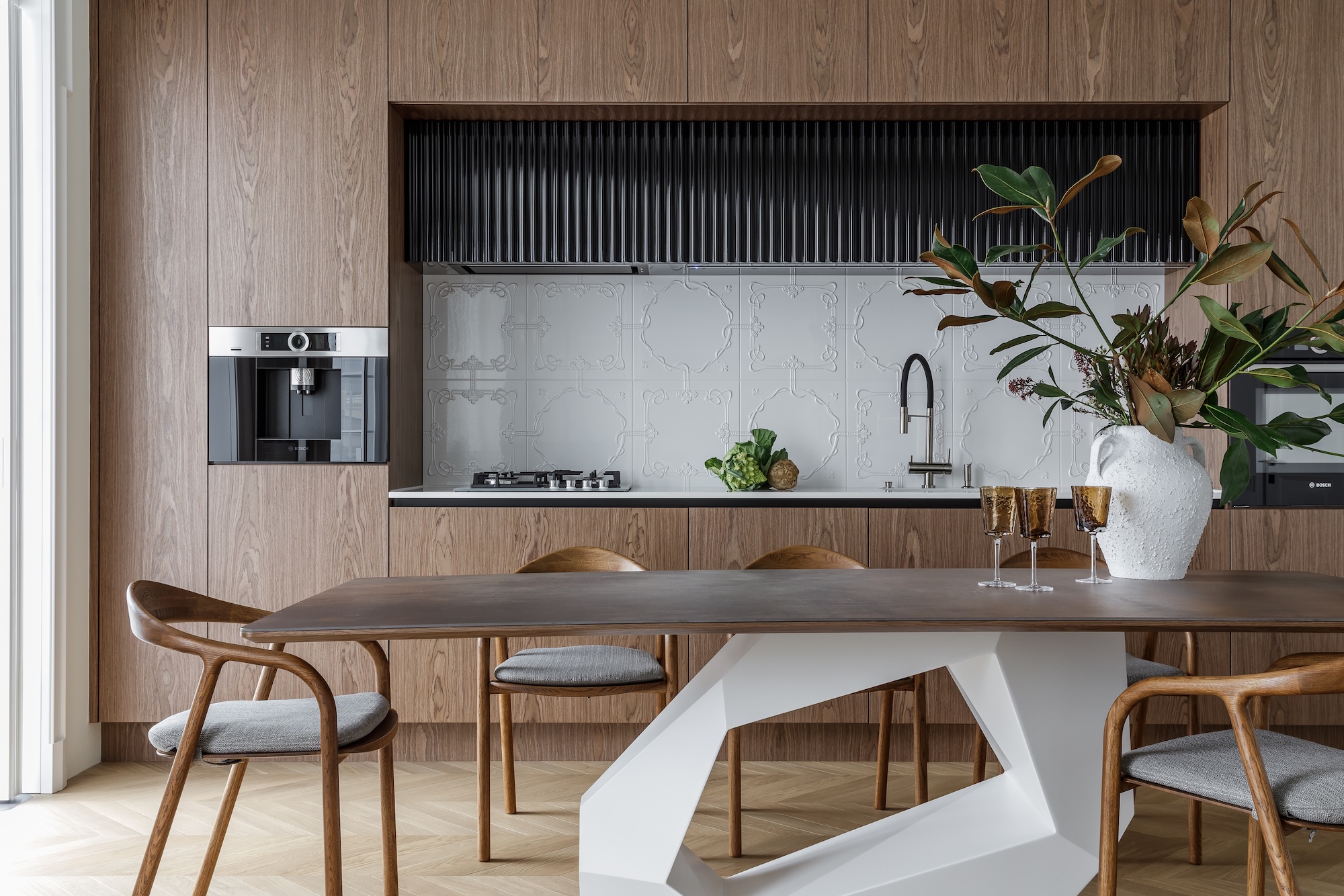 Дорогая кухня проектируется под ваши привычки. Глубина шкафов, высота столешницы, внутренние органайзеры для хранения ювелирных украшений или столового серебра — все это создается, чтобы вам было удобно, а не чтобы фабрике было проще пилить.