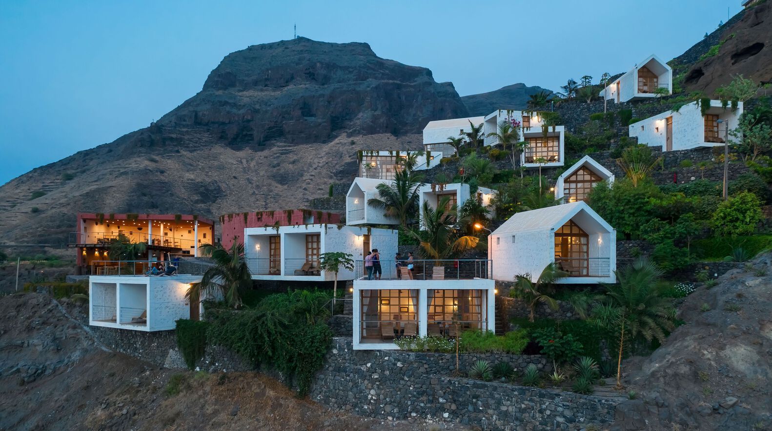 Обычно вода достигала земли только во время дождей, то есть 2-3 раза в год, поскольку Кабо-Верде находится на той же широте, что и пустыня Сахара. После вмешательства на участке вода постоянно доступна благодаря колодцу в долине с опреснительной установкой и гидравлическим насосом, который работает на солнечной энергии, вырабатываемой фотоэлектрическими панелями. В дополнение к этому, все здания оснащены механическими системами фильтрации и повторного использования дождевой воды. Эти воды после механической фильтрации и через самотековую систему по каплям орошают растительность вокруг зданий.