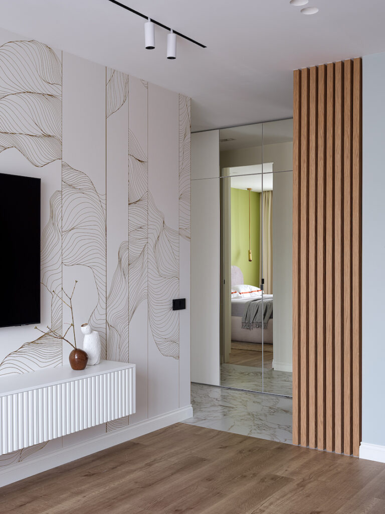 Мария Кулак: Квартира располагалась в доме из старого фонда. Мы полностью демонтировали два дверных проема, оставив свободными проходы на кухню и в гостиную из прихожей.