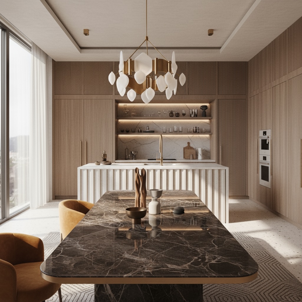 Кухня-остров. Это сцена для кулинарных дуэтов и задушевных бесед за чашкой кофе. Пока один готовит, другой может сидеть рядом, делиться новостями, помогать.