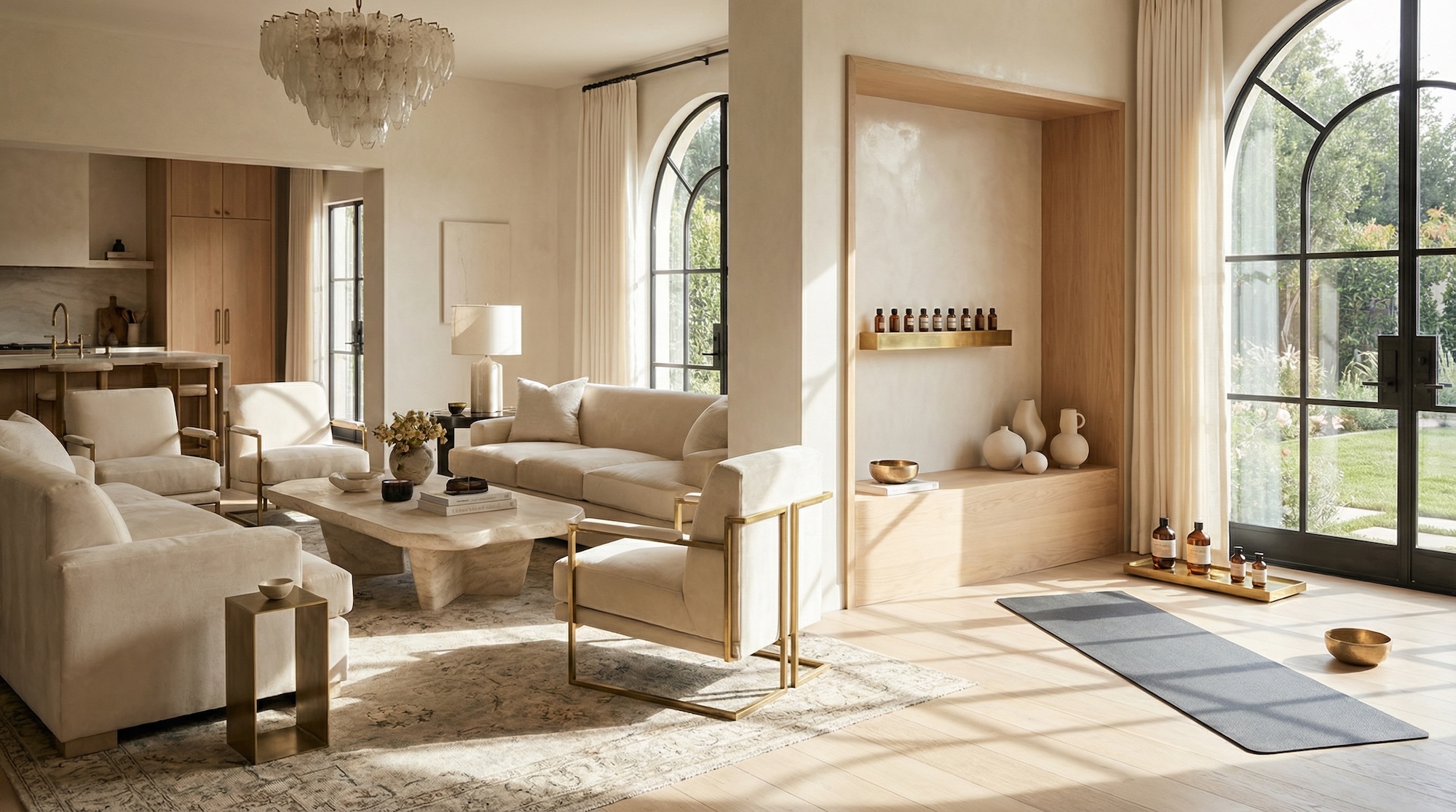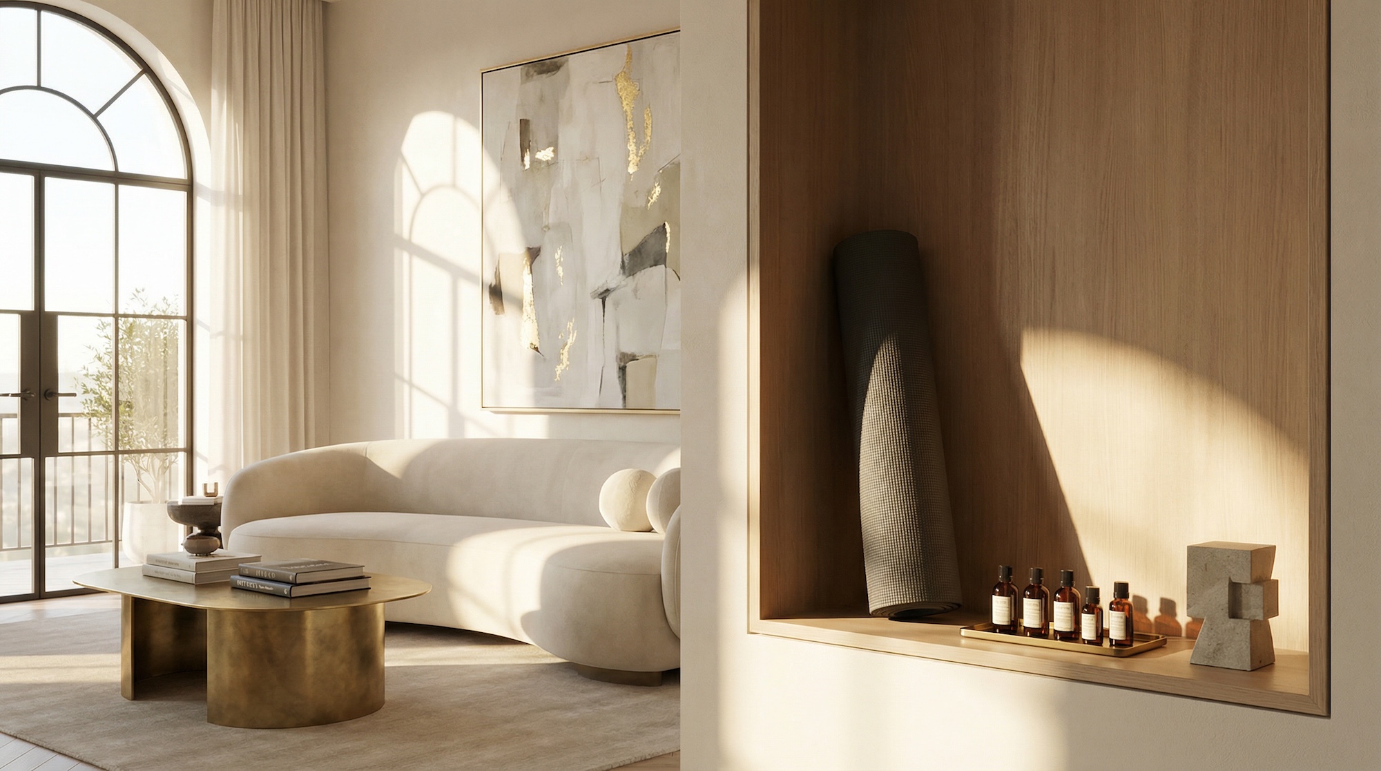 Появились новые функциональные единицы: угол для дыхательных практик и ниша для йоги. Главное требование к ним — моментальная доступность. Ритуал должен начинаться за секунду, без необходимости доставать инвентарь из кладовки. Разберемся, как это спроектировать.
