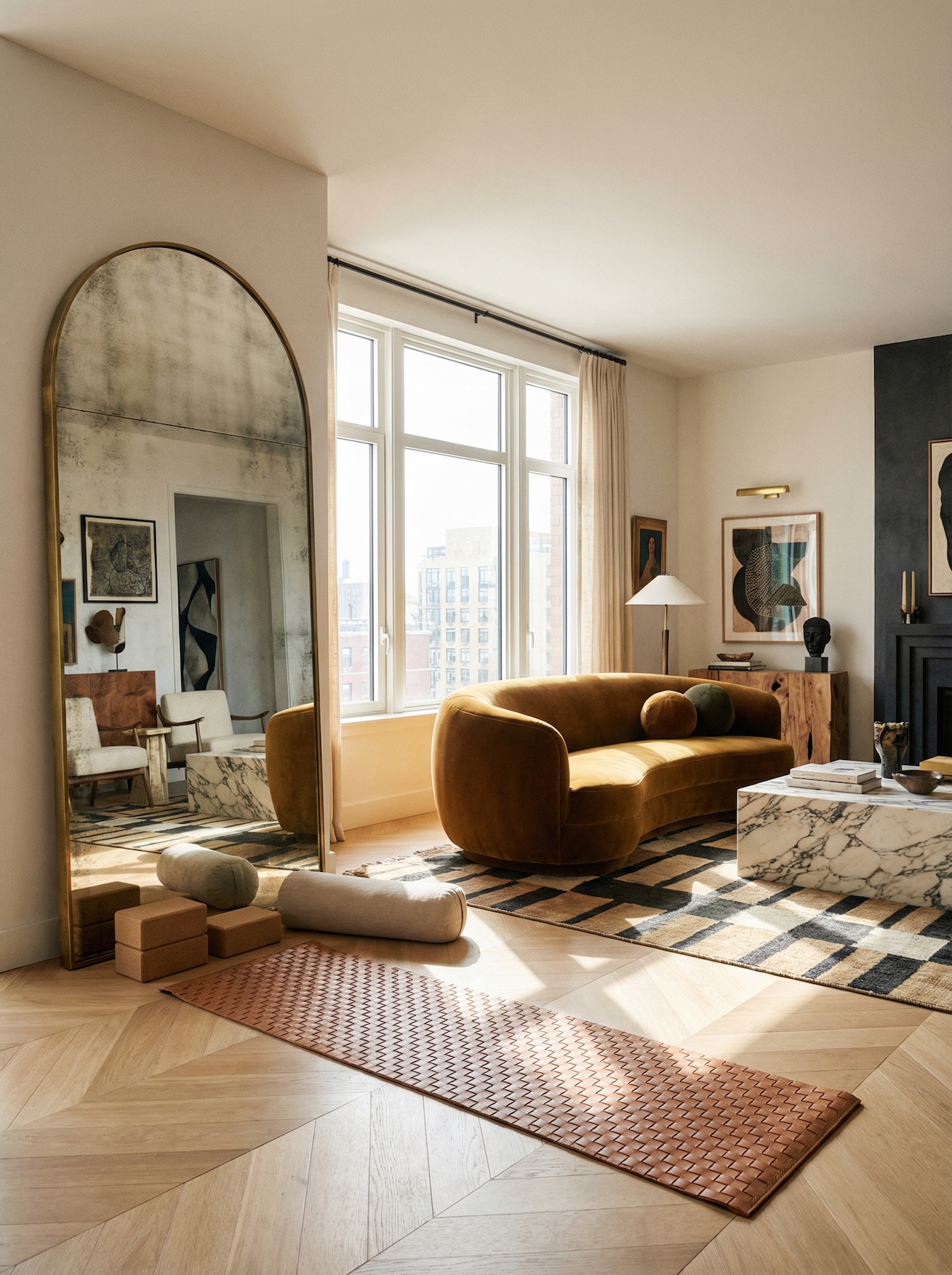 Если для полноценной студии места нет, проектируется йога-ниша. Это трансформируемое пространство, которое может быть частью гостиной или мастер-спальни.