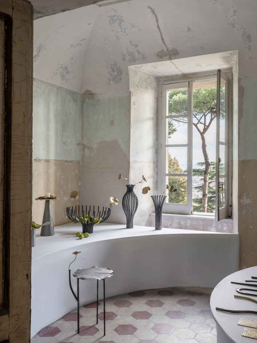 В случае с вещами Allegorie металл также играет главную роль. Дизайнеры из миланской студии Debonademeo задействовали мощности мастерской Bottega Vazzoler, потомственных кузнецов в третьем поколении. В мастерской в маленьком городке недалеко от Венеции семья Ваццолер уже полвека производит уникальные изделия.